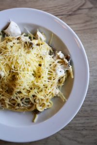 Описание: Спагетти с курицей и грибами в трюфельно-сливочном соусе